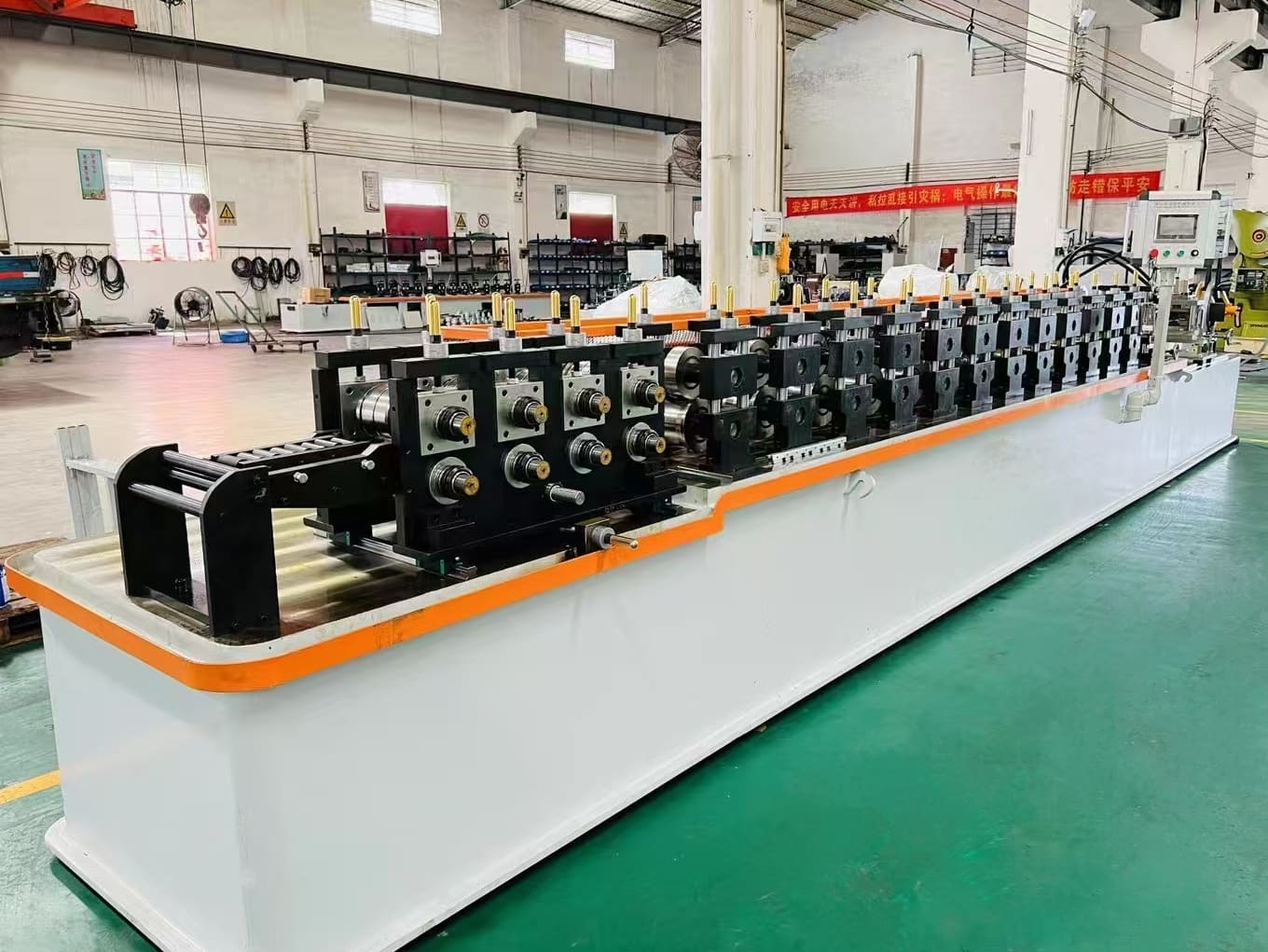 | Machine safety cover are an option for safety consideration. The roll forming station will covered with a complete safety cover with windows at both side of the machine. Other place like de-coiler, auto bundling and stacking machine will have fencing around. Once fence open or when the sensor around the machine detect human go inside the fence or get too close to the machine, the machine will stop automatically. |